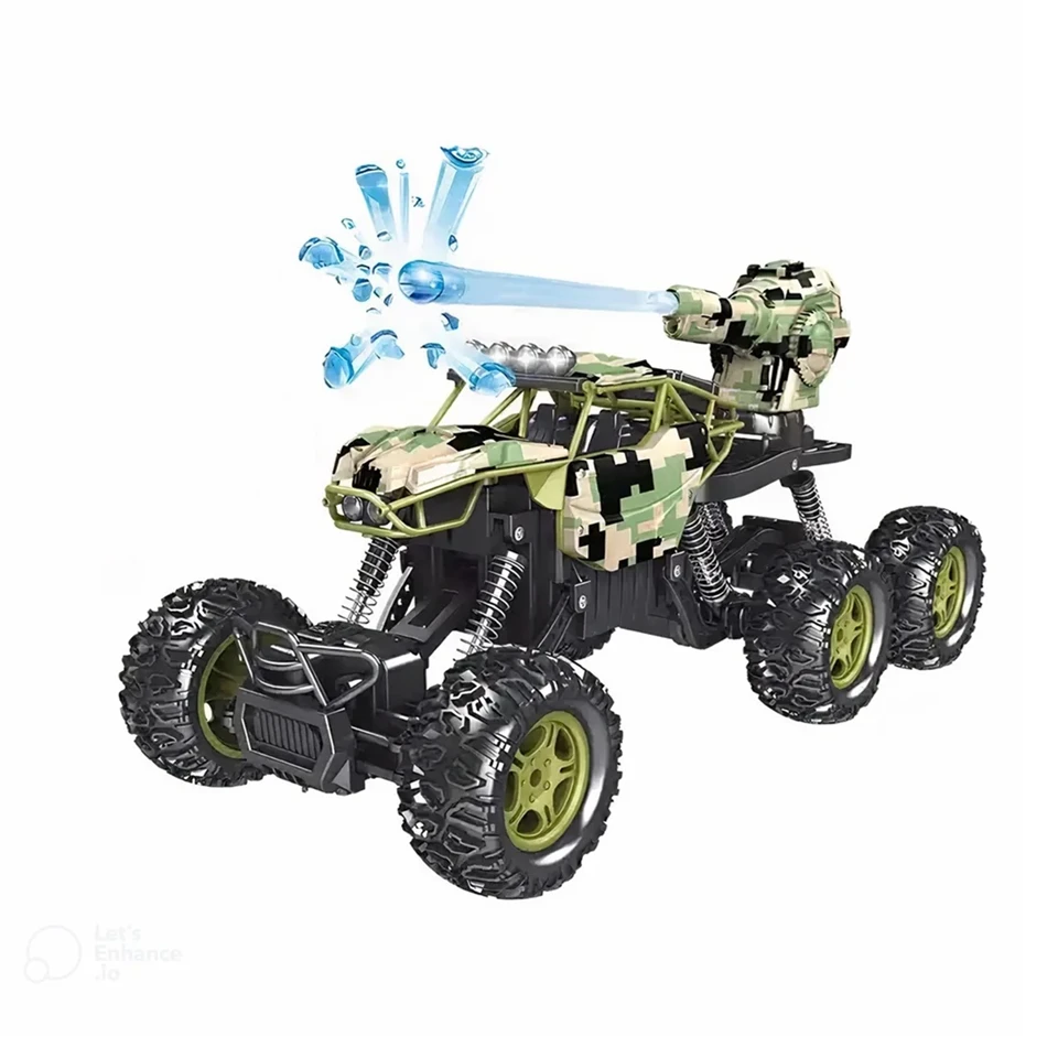- Vízibomba kilövő: Élvezd a különleges vízi kalandokat a beépített vízibomba kilövővel. Nyári játékaid sosem lesznek ugyanazok – frissítsd fel barátaidat egy váratlan vízi csatával, melyet a terepjáró könnyedén irányít!
