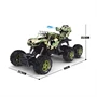 - 2.4 ghz távirányító: A magabiztos irányítás érdekében a terepjáróhoz egy hatótávolságban verhetetlen 2.4 ghz távirányító tartozik. Ez biztosítja a zavartalan vezetési élményt, és lehetőséget ad arra, hogy több jármű egyidejűleg működhessen anélkül, hogy interferenciát okozna.