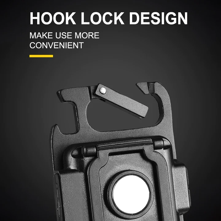 Mini COB led zseblámpa, 500 lumen, újratölthető, 3 fénymód, hordozható zseblámpa összecsukható állvánnyal, sörnyitó és mágneses talp, kulcstartó, táskatartó, horgászathoz, sétához és kempingezéshez