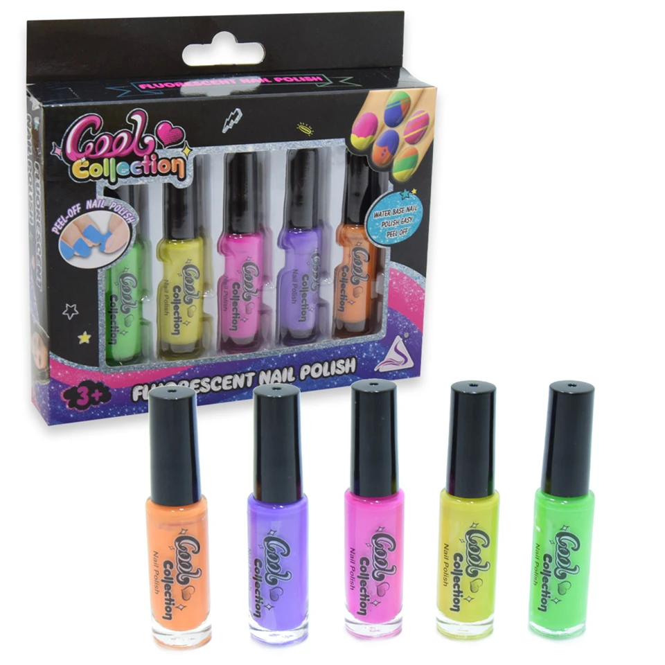 Különleges ajándékötlet gyermeked számára - a fluoreszkáló körömlakk szett! Ebben az öt színben pompázó készletben a legmenőbb és legdivatosabb színek találhatóak meg, melyek ragyogóan fluoreszkálnak a sötétben. Ha szeretnéd, hogy kislányod körmének minden pillanata különleges legyen, akkor a fluoreszkáló körömlakkokkal tuti nem nyúlsz mellé!
