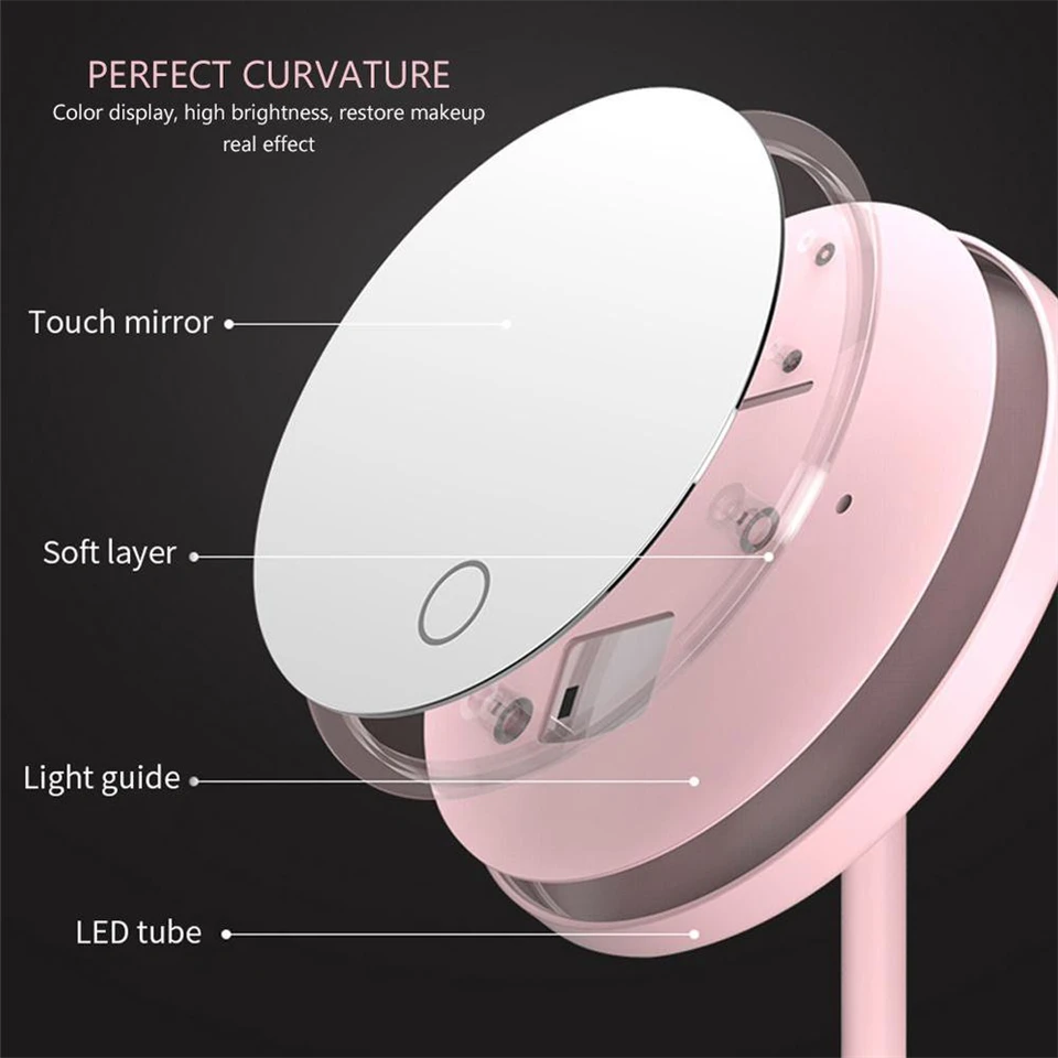 A LED-es tükör USB-ről működik – bárhová viheti anélkül, hogy aggódnia kellene az áramellátás miatt. A megvilágított sminktükör egy kerek LED lámpával rendelkezik, amely tökéletesen megvilágítja arcát, nyakát és dekoltázsát. LED-es tükör elfordulási szöge 90°-on belül állítható – gond nélkül beállíthatja a tükröt saját igényeinek és preferenciáinak megfelelően. A LED-es sminktükör széles és stabil talppal rendelkezik, így biztos lehet benne hogy a termék nem borul fel, akkor sem, ha úgy dönt, hogy maximális elfordulási szögbe állítja.