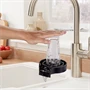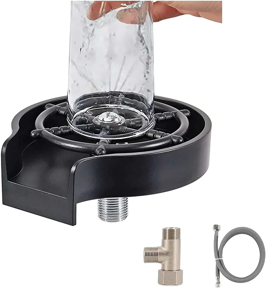 A készülék egyszerűen felszerelhető a mosogatótálcára, majd a poharakat csak fejjel lefelé kell ráhelyezni és enyhén megnyomni. A nyomás hatására automatikusan elindul a vízsugár, amely eltávolítja az összes szennyeződést.