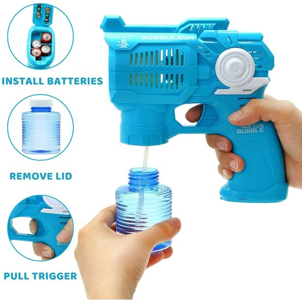A buborékfújó pisztoly egyszerűen használható, egy patron jár hozzá telis-tele lehetőségekkel. Az elemekkel működő, automata pisztoly több színes buborékot fúj ki magából egyetlen ravasz meghúzásával. Az automata buborékfújó pisztoly véletlenszerű színben kerül szállításra.