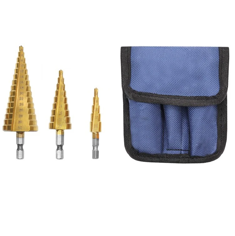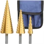 3 darabos lépcsős-fúró szett és 4-32 mm-es kúp alakú fúrófejekkel.
