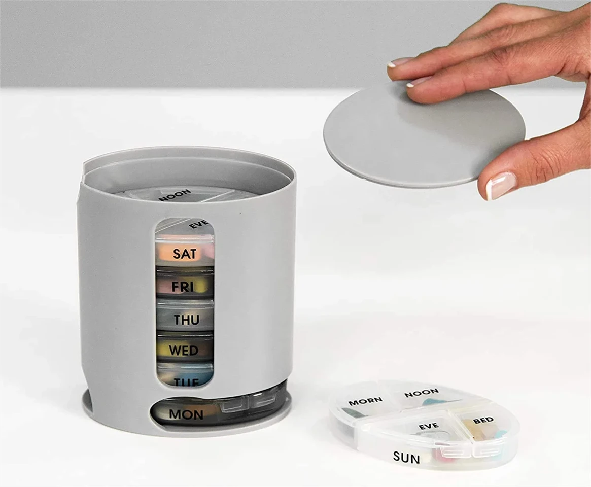 A gyógyszerrendező doboz különböző rekeszekből áll, amelyekben előre elhelyezheti a különböző tablettákat, így nem kell minden egyes alkalommal keresgélnie a különböző gyógyszerek között. A kompakt mérete miatt a gyógyszerrendező doboz könnyen hordozható, így bármikor és bárhol könnyen elérhetőek lesznek a pirulái.