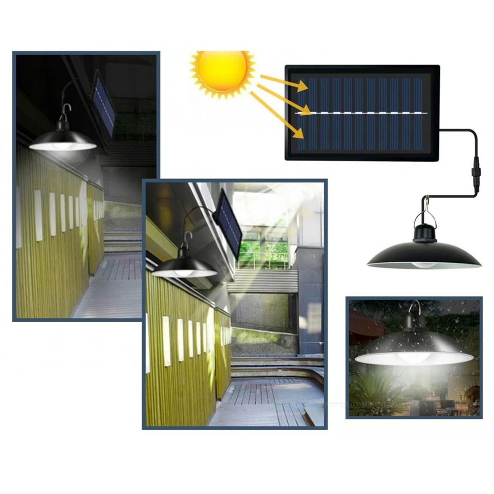 Felakasztható napelemes ledes lámpa. A felszerelése egyszerű, külső áramforrást nem igényel. 90W, hideg fehér fénnyel világít, vízálló, így bátran teheted fedetlen teraszokra, irodákhoz, parkokba, vagy parkolókba is. A csomagban található távirányítóval tudod vezérelni.