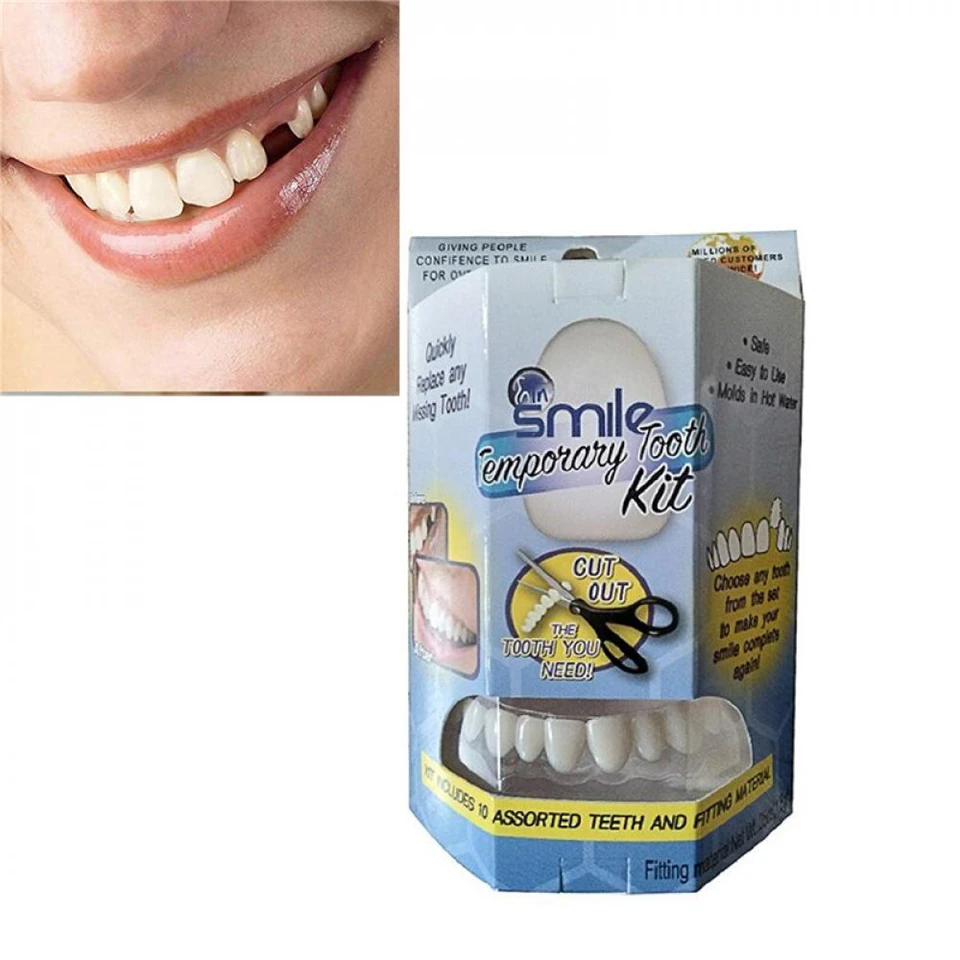 Nem kell fogorvoshoz menned – csak kövesd a mellékelt útmutatót, és néhány perc alatt visszanyerheted ragyogó mosolyodat! A csomagban 30 különböző árnyalatú szilikon foghelyettesítőt találsz, így könnyen kiválaszthatod a saját fogszínedhez leginkább illőt.
