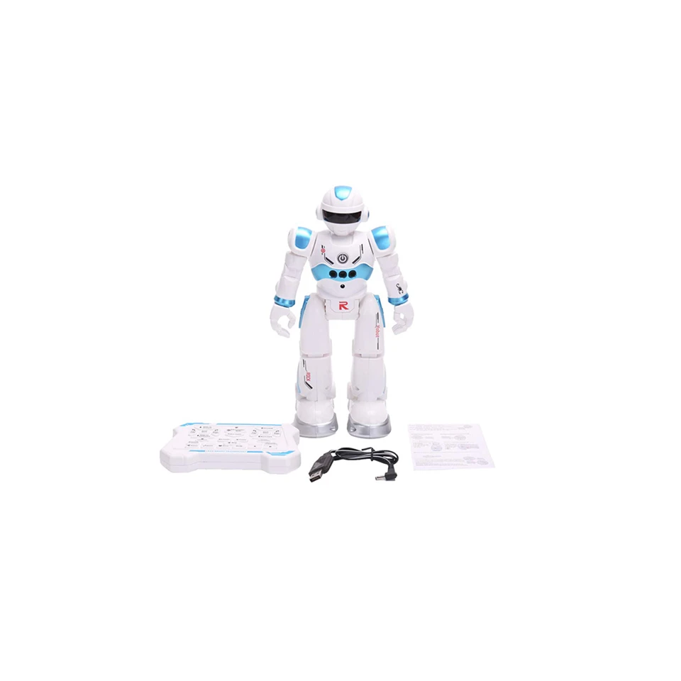 Érzékeli az akadályokat, irányt vált és kikerüli, ami elé került; ráadásul kezed mozgatásával is irányíthatod, ha az érzékelője hatótávjában vagy. A fején található sáv pirosan világít a benne lévő LED-nek köszönhetően. A mellkasán található gombbal tudod üzembe helyezni a robotot, melyet a mellékelt USB-s töltővel lehet feltölteni. Távirányítója két darab AA elemmel működik.