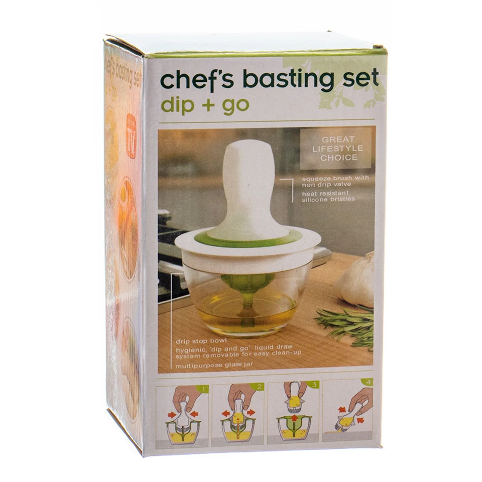 Praktikus multifunkciós konyhai eszköz. A termék egy mikrózható üvegpohárból és egy kefés végű pipettából áll. Az üvegedényben kikeverhető a kívánt pác, mártás vagy a tojássárgája. A pipettával felszívjuk a folyadékot, és a kefe segítségével egyenletesen eloszlatjuk a kívánt felületen.