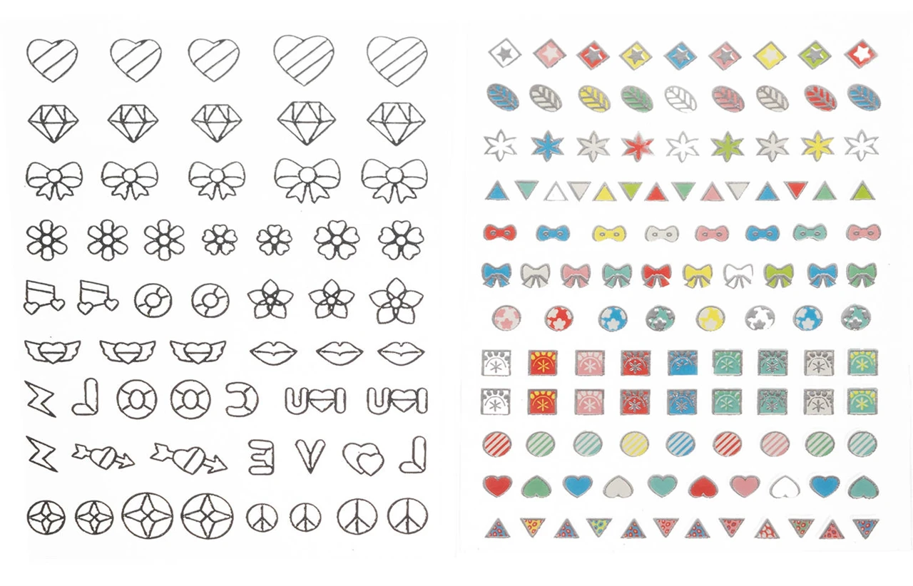 A játék végén a körömlakk egyszerűen lehúzható a körmökről. A többi díszítőelem (szív és virág formájú színes kövek) körömlakk lemosóval távolíthatók el. Az elkészített mintáknak csak a fantázia szabhat határt!
