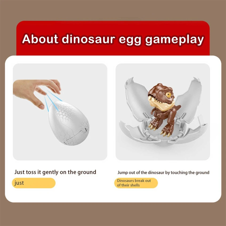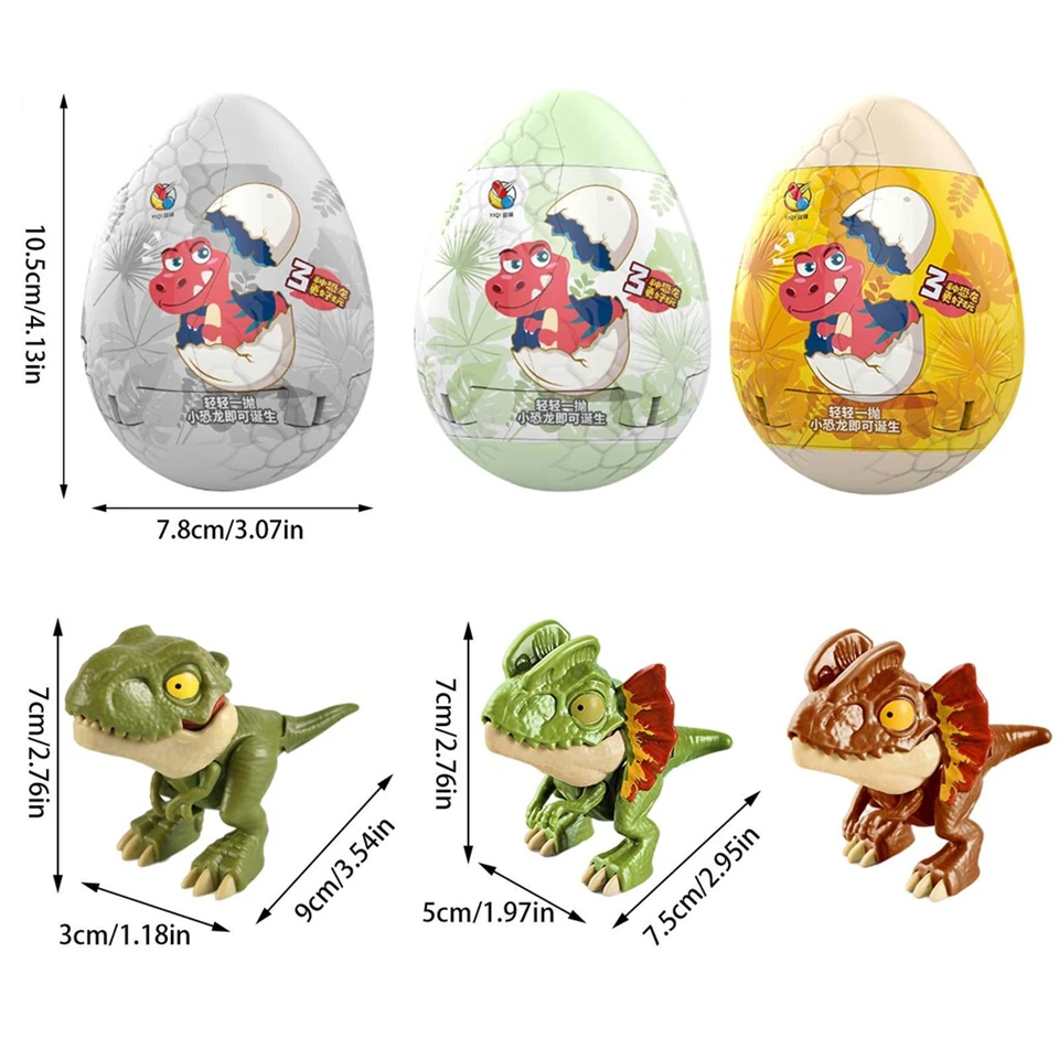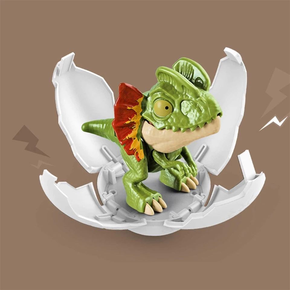 A tojást kinyitva előbukkan a harapós bébi dínó, melynek designja véletlenszerű, így minden egyes dínó kibontása meglepetés.