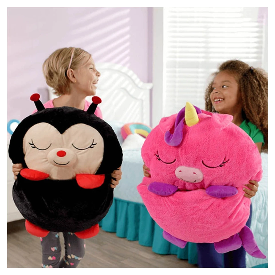 A pihe-puha jókedvcsináló hálózsák tökéletes választás minden gyermek számára! Az összecsukott állapotban lévő kis puha plüssállat kinyitva párnává és hálózsákká alakítható, mely rendkívül prémium minőségű plüssből készült, pihe-puha és maximális kényelmet biztosít az álmok világában.