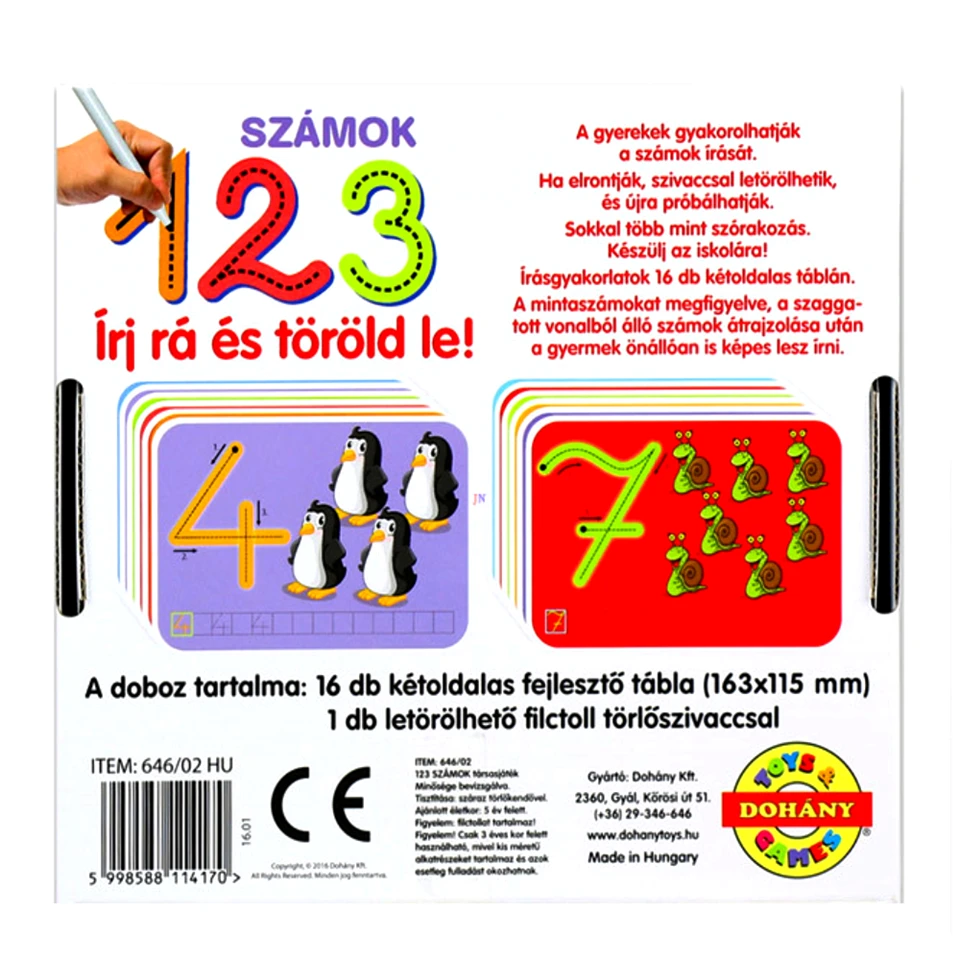 Számok Megismerése: A játék segít a gyerekeknek megismerni és azonosítani a számokat. A számok interaktív módon jelennek meg a kártyákon, és a gyerekeknek fel kell ismerniük, majd leírniuk őket.