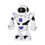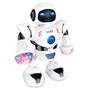 A fehér játék robot 22 cm magas. Elemekkel működik, melyeket a hátán lévő elemtartóba kell helyezni. A robot fején hátul található kapcsolóval lehet a játékot üzembe helyezni. Bekapcsolás után megszólal a zene, a robot szemei és a szája LED fénnyel világít. A két karjába épített 4 cm-es LED lámpa 20-30 cm es területen színes fényt vetít a padlóra. Amikor a robot táncolni kezd, egyik lábáról a másikra lépked, majd a a karjaival együtt a lámpák is mozgásba lendülnek, így a fénysugarak is forogni kezdenek. Ez az összhatás látványos és lenyűgöző is egyben. A robotokért rajongó gyermekek tetszését egészen biztosan elnyeri ez a multifunkciós játék robot.