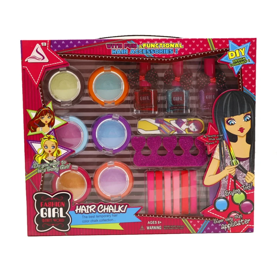 - Sokoldalú készlet: A szépségkészletünkben megtalálható a hajkréta és a körömlakk, amelyek lehetővé teszik a gyerekeknek, hogy különféle stílusokat és megjelenéseket alkossanak. A hajkrétával színes tincseket varázsolhatnak a hajukba, míg a körömlakkal pedig különleges és divatos körmöket készíthetnek.